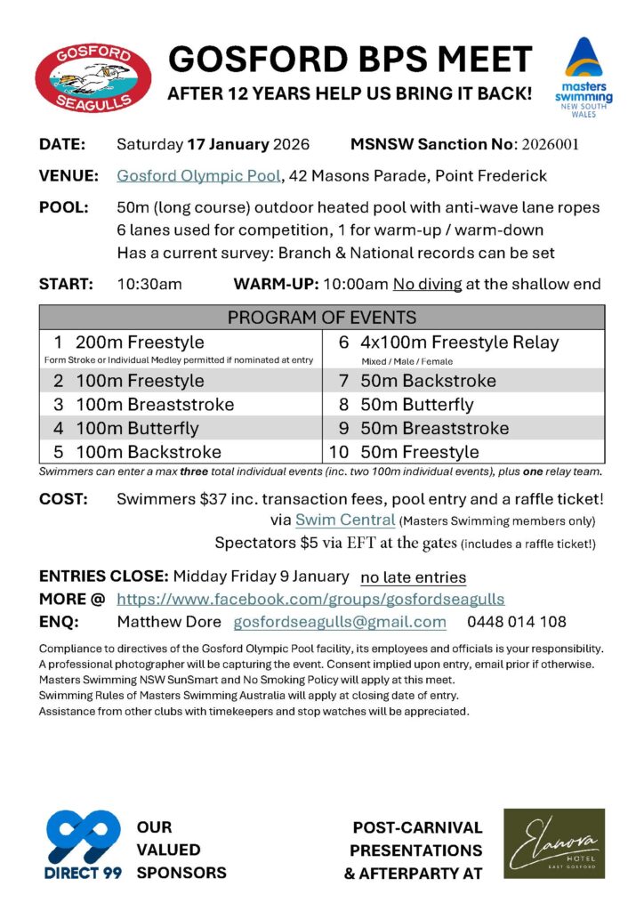 Entries must be submitted individually and payment made through Swim Central.